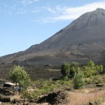 Jetzt mal kurz ausgeholt: Also die Cha das Caldeiras ist ein Vulkankrater, der auf einer Hälfte ins Meer abgerutscht ist. Der höchste Punkt in dieser Caldeira (die keine klassische Einsturzcaldeira ist, weil darunter keine Magmablase ist) ist der Pico de Fogo mit gut 2800 m: Quasi ein Vulkan im Vulkan. Gleich daneben ist der Pico Piqueno, der beim letzten Ausbruch 1995 entstand: Da soll es wohl noch richtig heiß sein.