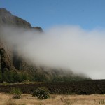Heute sind wir mal schön gemütlich den nördlichen Rand der Caldera entlangmarschiert – dort wo immer die Wolken reinziehen. Und sofort wandelt sich das Bild: die Landwirtschaft wird ein wenig intensiver und unvermutet findet man sich in einem Wald voller Eukalyptos und Zypressen wieder. Am Ende der Bordeira kam dann der Nebel – oder besser: die Wolken. Wieder völlig andere Eindrücke: kühl und feucht und neblig – wie ein Frühling zuhause. Farne, Flechten, Moose – wären da nicht zwischendrin die Agaven, könnte man das glatt für ein deutsches Mittelgebirge halten. Morgen, beim Abstieg nach Mosteiros, gehen wir den selben Weg weiter – da soll sich die Landschaft wiederum ändern.