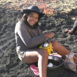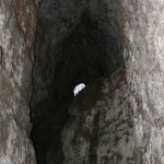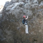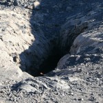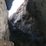 Aber wir sind bald umgekehrt, weil wir uns mit Jason (er nennt sich so weil die meisten Touristen Joao nicht aussprechen können…) verabredet waren. Er kam zur vereinbarten Zeit, ausgestattet mit Klettergurten, Helmen und Lampe. Dann ging es über die Lavafelder zu einer ziemlich versteckten Höhle. Hier ist der Magmastrom 1951 durchgerauscht und hat eine bizarre Höhle mit kleinen Magma-Stalagtiten hinterlassen – wunderschön! Nach Anlegen des Klettergeschirrs (gar nicht so einfach wenn die nur „Spargelgrößen“ haben – aber irgendwie ging’s dann doch…) ging es mit Sicherungsgurten eine steile Drahtseilleiter runter. Die Höhle war ca. 15 m hoch und ging dann ca. 30-40 m weiter, z.T. auf allen Vieren. Überall tropfte Wasser von der Decke (was Elke übrigens in der drauf folgenden Nacht im Traum das gesamte Wasserproblem Fogos lösen lies: Sie trieb überall Tunnel durch die Lava, fing unten das Wasser auf und leitete es in die Zisternen….). Die engste Stelle mussten wir durchrobben (gerade mal so groß, dass auch ich so eben durchgepasst habe…).