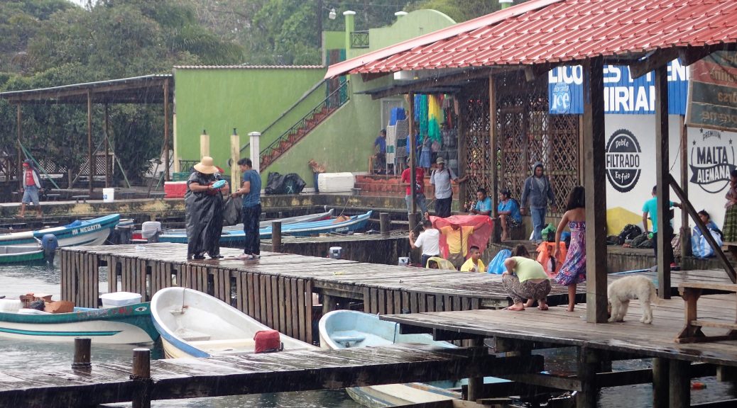 Über Morales sind wir mit dem Microbus (wieder hat der Anschluss prima geklappt) nach Puerto Barrios gelangt. Im Rucksack die noch leicht feuchte Wäsche, denn gestern ist sie denn doch nicht mehr ganz trocken geworden – wir haben es befürchtet…